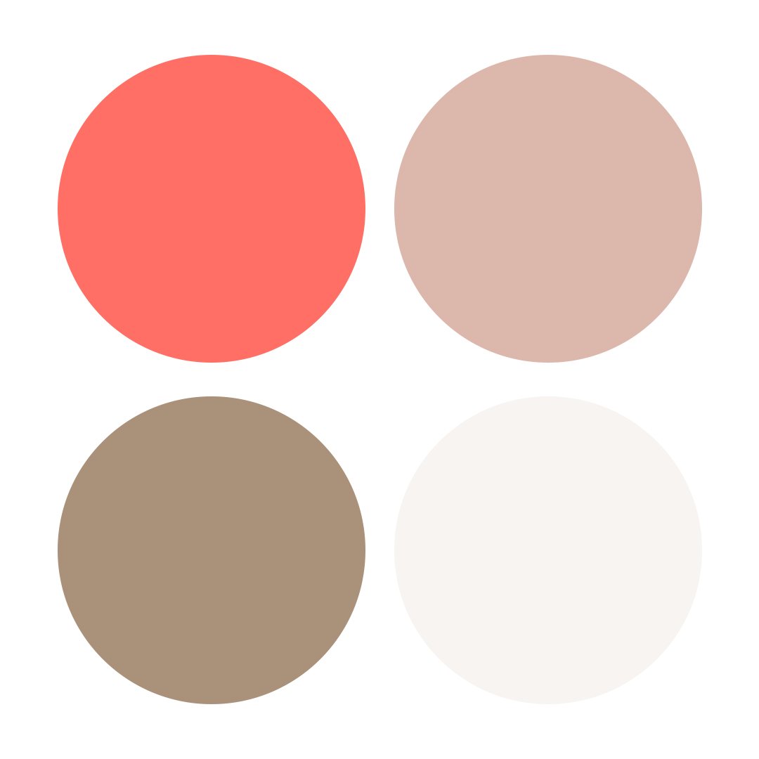 Coral (#F9796C), Dusty Rose (#D6B8AE), Warm Taupe (#A6927D), Eggshell (#F7F4F1)