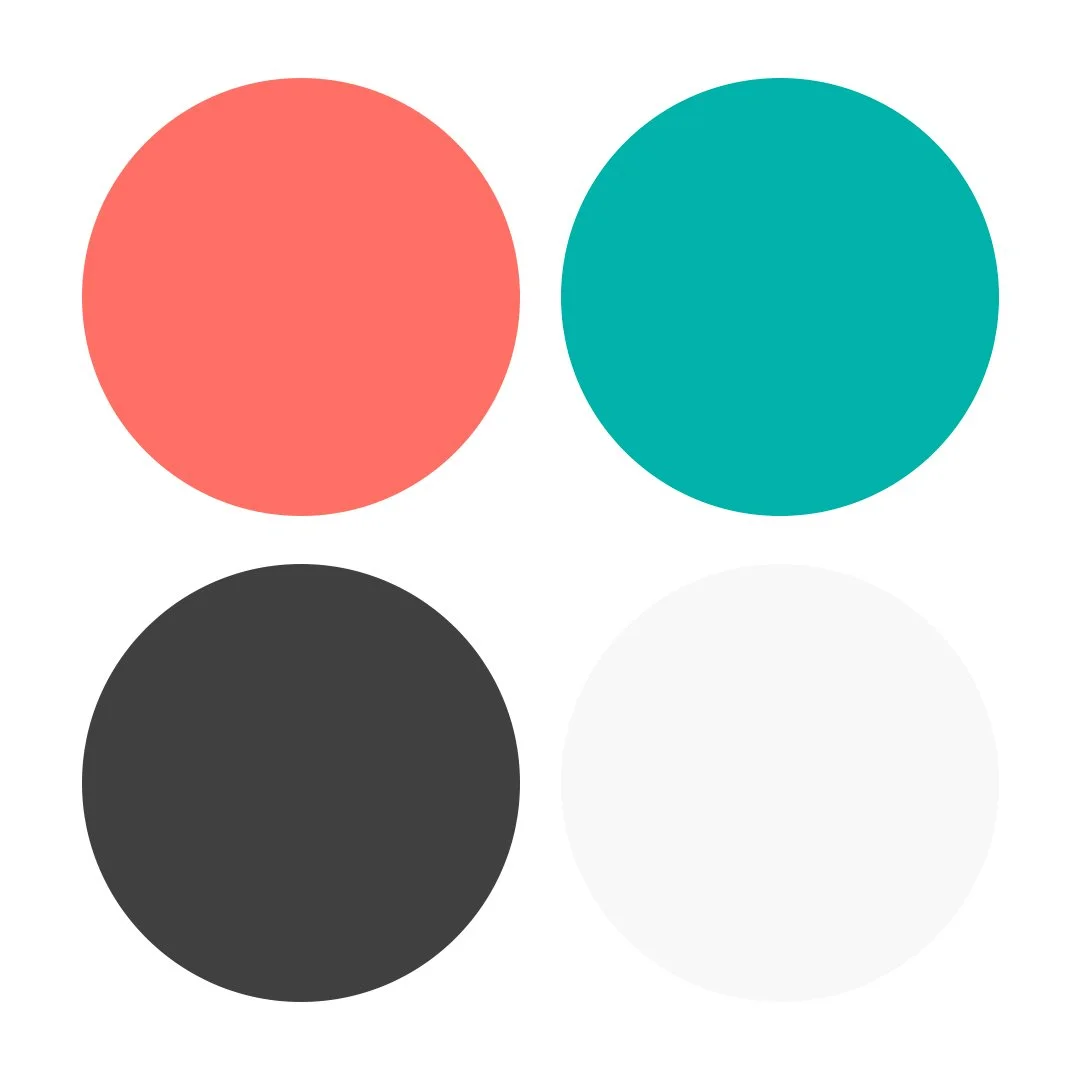 Coral (#F9796C),Teal Green (#3AAFA9), Charcoal (#404040), Ivory (#F8F8F8)