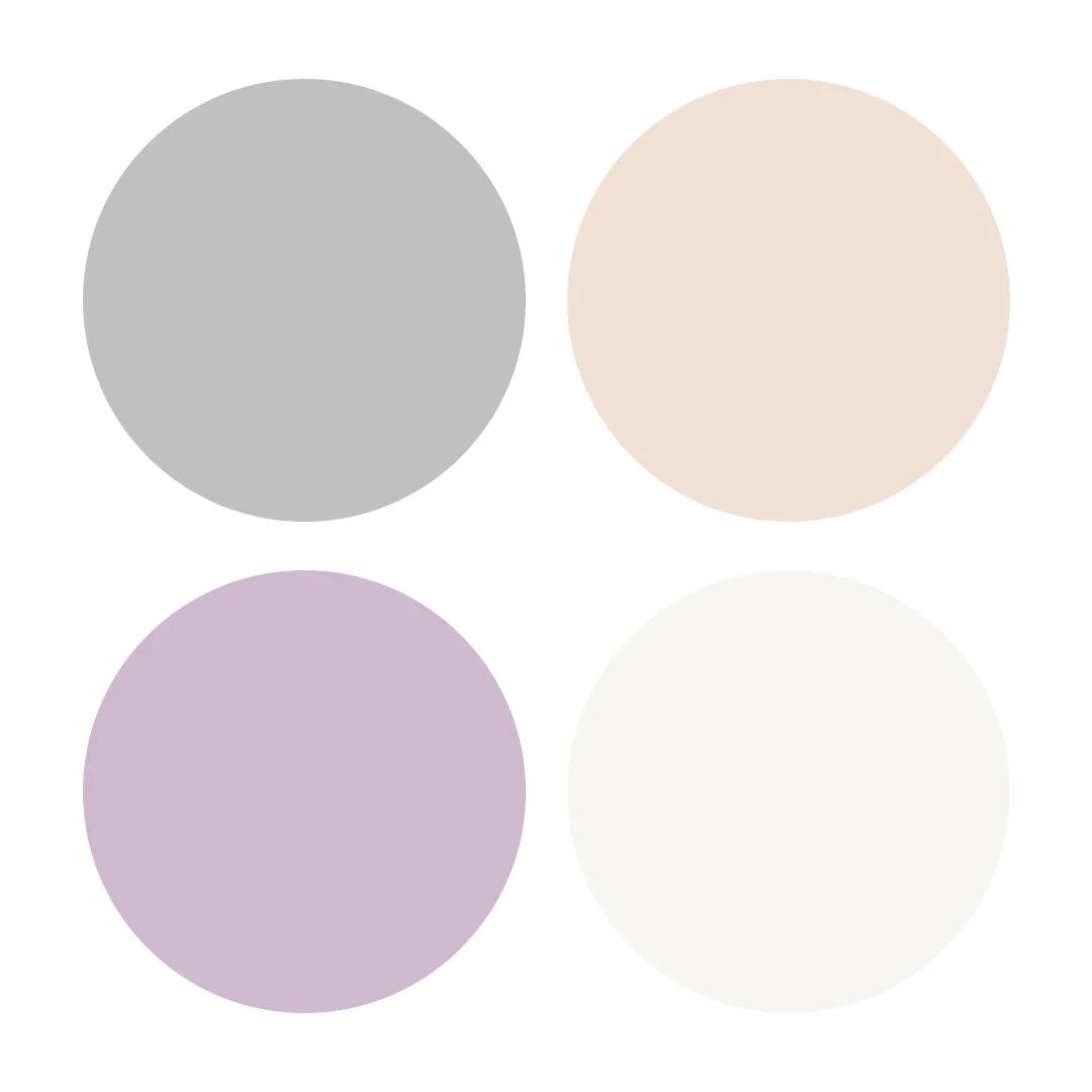 Silver (#C0C0C0), Champagne Beige (#EFE1D6), Dusty Mauve (#CBBACD), Soft White (#F7F6F3)