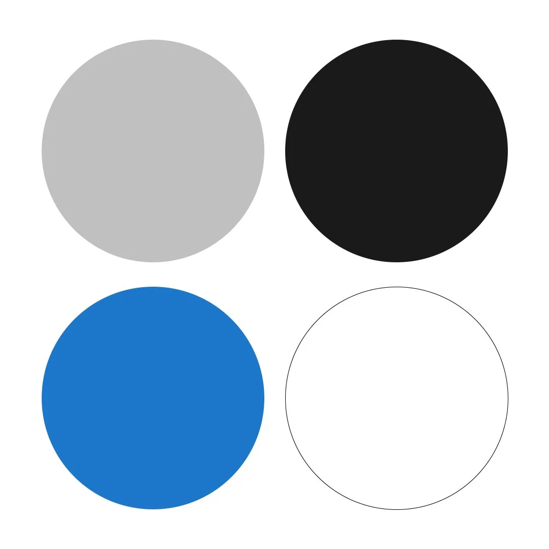 Silver (#C0C0C0), Jet Black (#1A1A1A), Electric Blue (#3A75C4), Pure White (#FFFFFF)